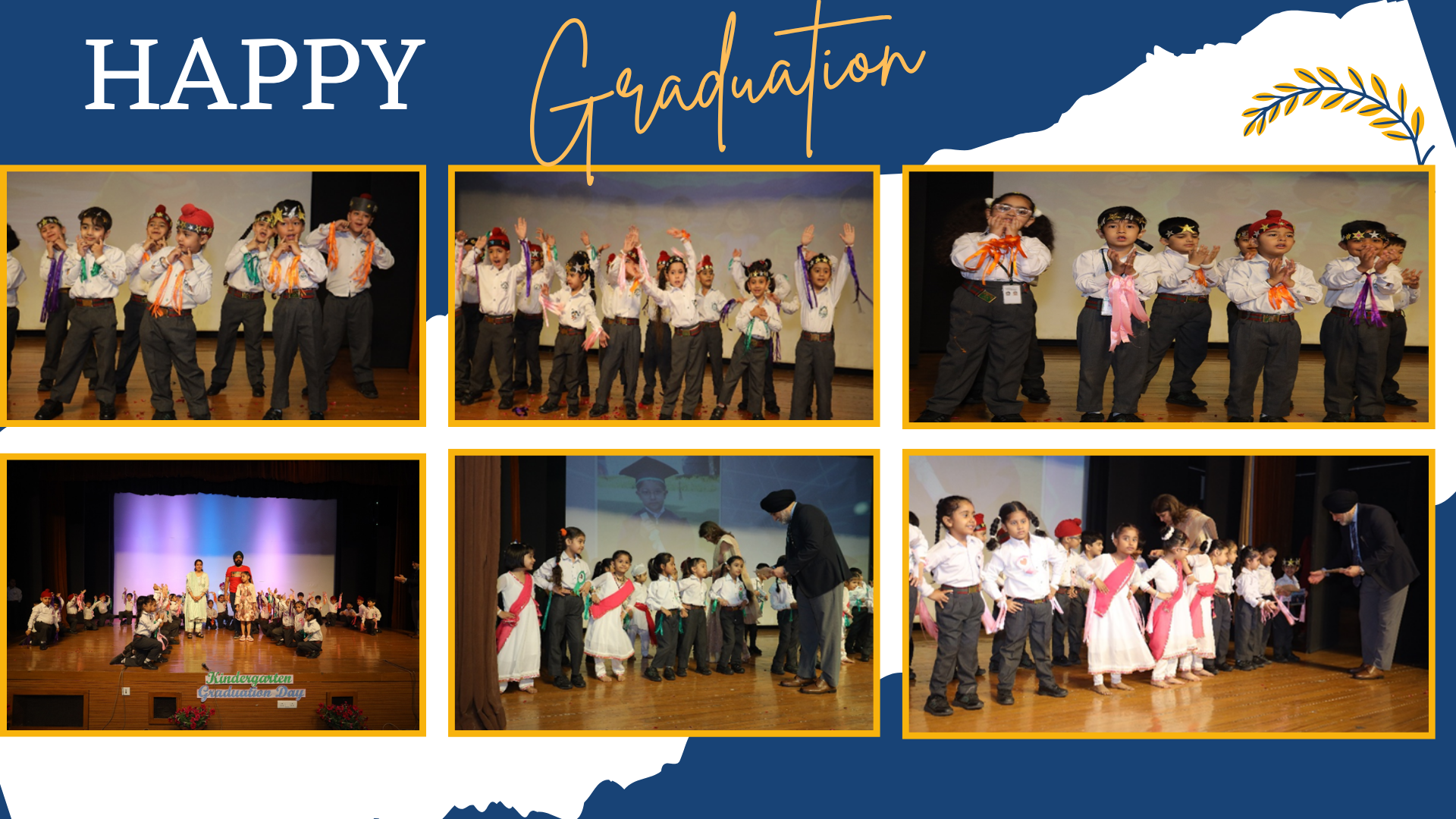 The programme came alive with vibrant performances by the little graduates. Their joyful action song and heartfelt “Shukriya” presentation beautifully expressed gratitude towards their parents and teachers. One of the most touching moments was the “Down the Memory Lane” segment, which showcased precious memories of their kindergarten journey, filled with laughter, learning, and friendships.